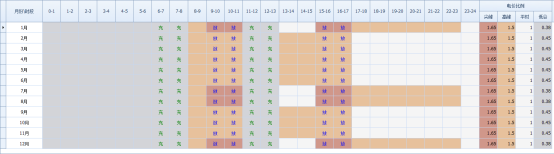 依据征求意见稿分时时段数据对全年电价分时时段进行图示如下: