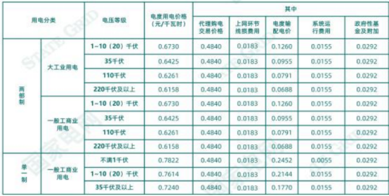 国网浙江2023年12月工商业电价标准