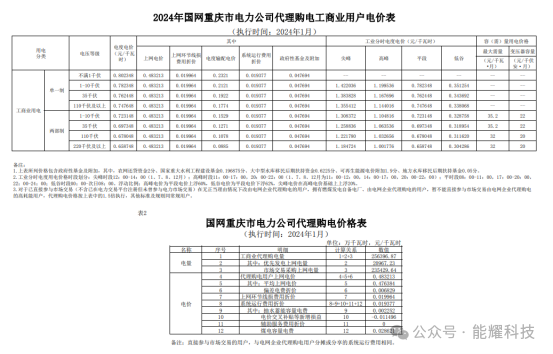 国网重庆2024年1月工商业电价标准