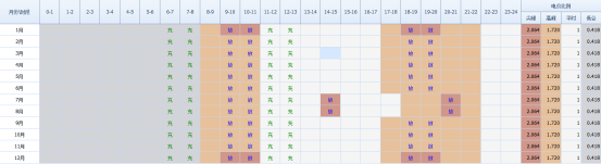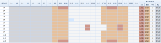 依据《关于调整工商业峰谷分时电价政策有关事项的通知》分时时段数据对全年电价分时时段进行图示如下: