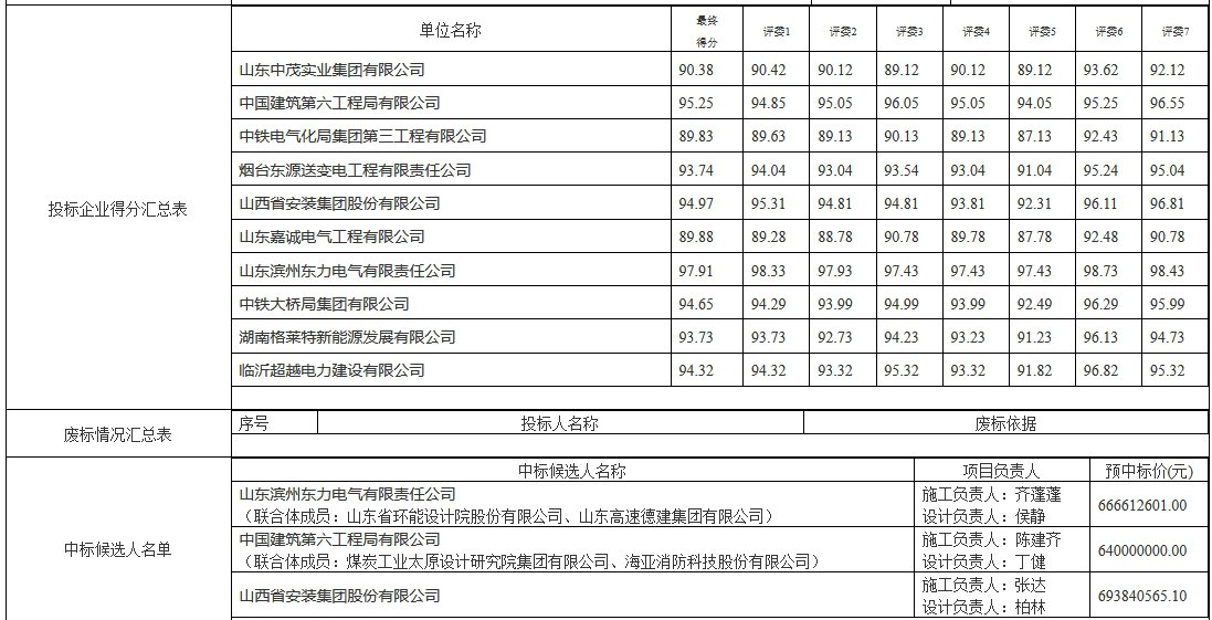 第二中标候选人为中国建筑第六工程局有限公司(联合体成员:煤炭工业太原设计研究院集团有限公司、海亚消防科技股份有限公司),投标报价64000万元,折合单价1.6元/Wh;
