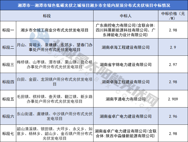 近日,湘潭市—湘潭市绿色低碳光伏之城项目湘乡市全境内屋顶分布式光伏项目中标结果公示。