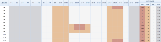 夏季(7、8、9月)和冬季(1、12月)高峰时段电价在平段电价基础上上浮20%,低谷时段电价在平段电价基础上下浮45%。