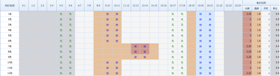 依据《关于进一步完善我市分时电价机制有关事项的通知》分时时段数据对全年电价分时时段进行图示如下: