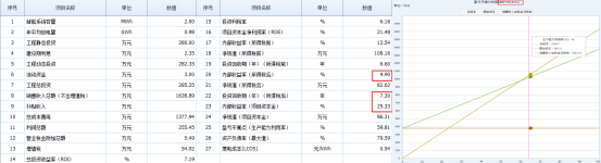 全投资收益率税后为9.90%,投资回收期税后为7.30年,资本金内部收益率为25.33%,资本金投资回收期为:4.00年,盈亏平衡点为59.81%,参考行业标准该项目财务评价可行。