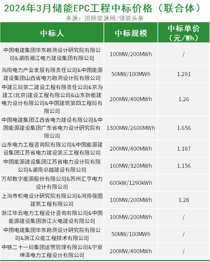 下面是储能EPC工程联合体投标,相关项目报价: