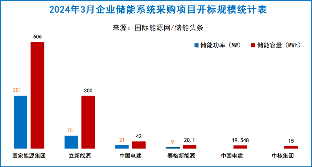 其中,国家能源集团位居第一,开标规模为606MWh;