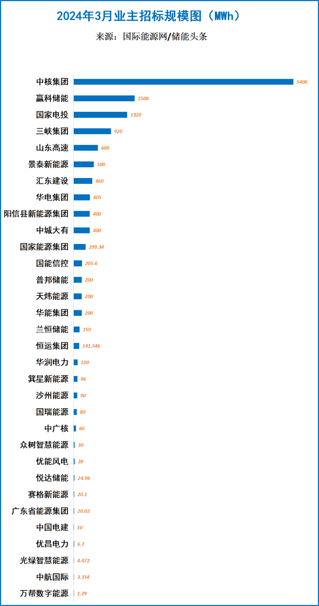三峡集团招标规模720MWh,位列第三。