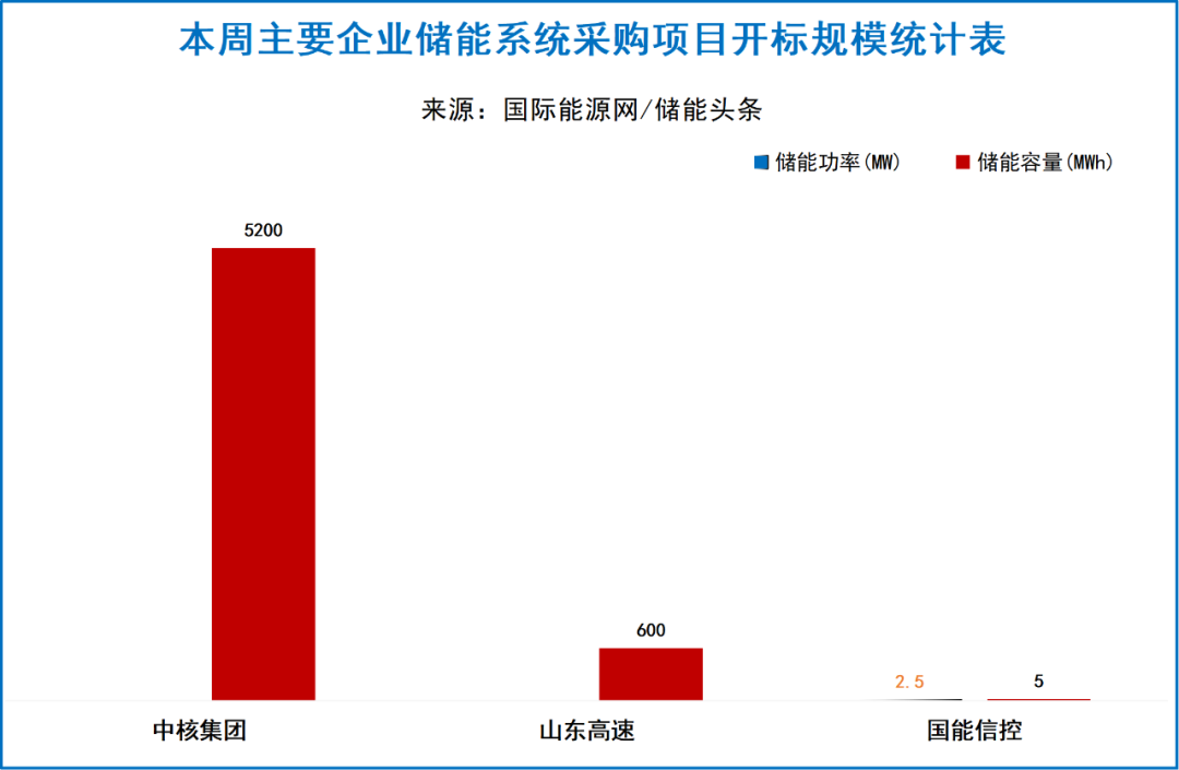 中核集团有1个项目开标,总规模为112.5MW/375MWh,中国电建华东院中标;