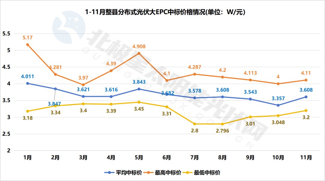 (2023年1~11月整县分布式光伏大EPC中标价格情况)