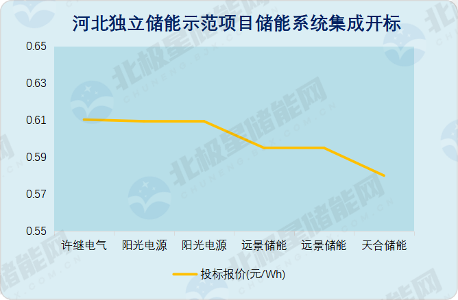 5月21日,国顺科技集团河北独立储能项目储能系统集成采购中标候选人公示,中标候选人包含阳光电源、远景储能、许继电气及天合储能,报价为0.58~0.6103元/Wh。其中阳光电源、远景储能分别预中标第二标段、第三标段。