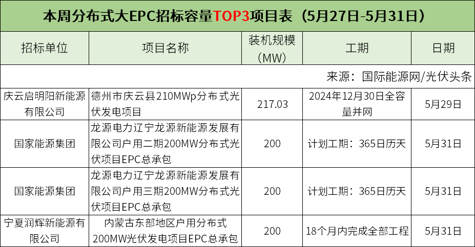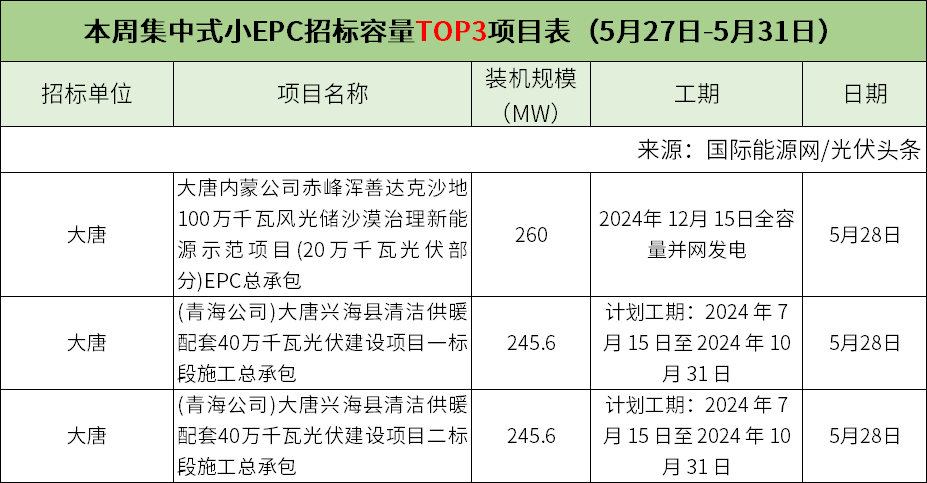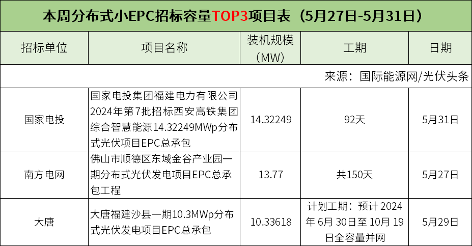 此外,本周分布式小EPC、集中式小EPC招标容量Top3项目具体情况如下: