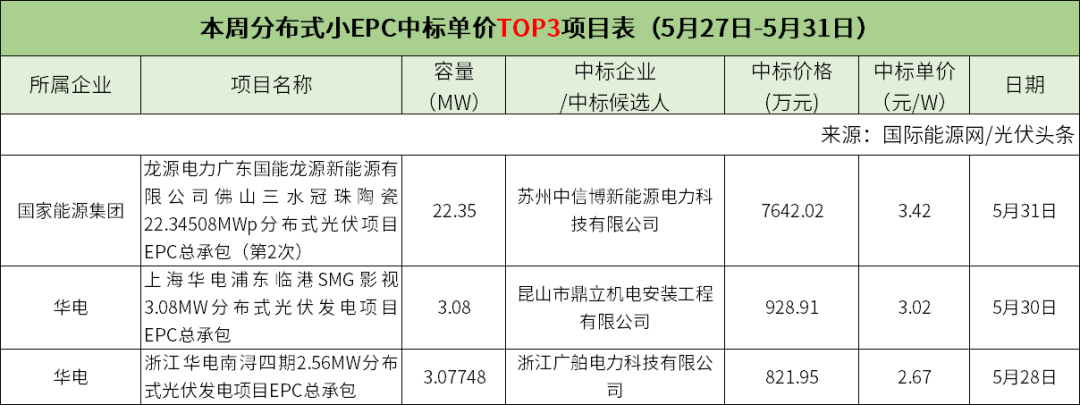 此外,本周分布式小EPC、集中式小EPC中标单价Top3项目具体情况如下: