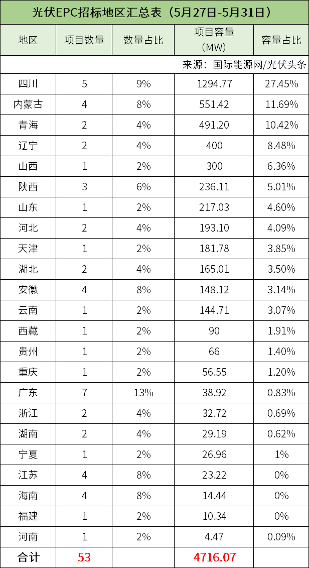 53个招标项目!装机规模4716.07MW