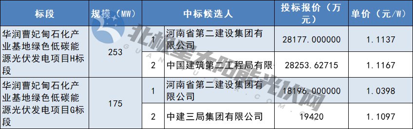 7月25日,华润曹妃甸石化产业基地绿色低碳能源光伏发电项目光伏场总承包(EPC)工程H、G标段中标候选人公布,第一中标候选人均为河南省第二建设集团有限公司。