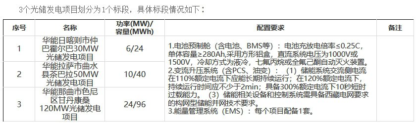项目招标人为华能西藏雅鲁藏布江水电开发投资有限公司,招标范围为三个光伏项目全部储能系统设备的采购、现场预制舱卸货、二次转运、吊装、安装;三个项目全部储能系统调试、试验、投运验收、试运行、竣工验收、资料移交(其中竣工验收内容包含仲巴霍尔巴、曲水茶巴拉包含涉网试验、电芯试验及储能系统相关专项验收,那曲色尼甘丹康桑项目不含涉网试验,由其他承包人负责)。