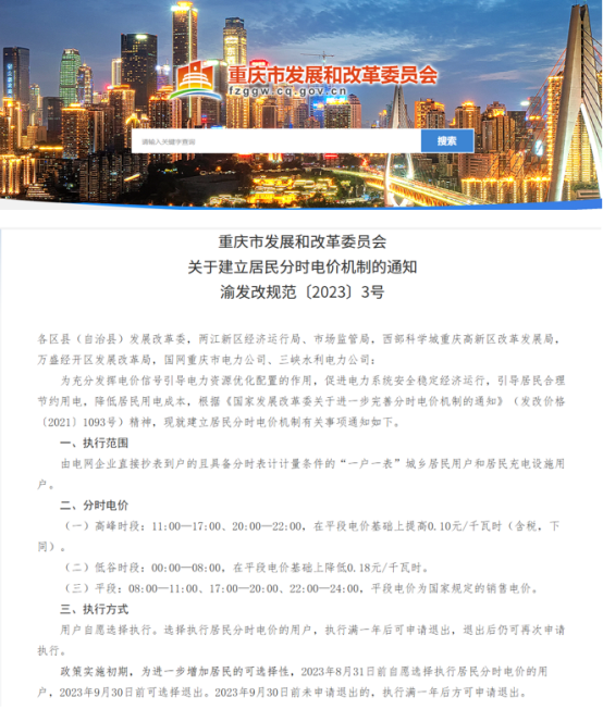 重庆市工商业分时电价标准的依据是重庆市发展和改革委员会发布的《关于建立居民分时电价机制的通知》(渝发改规范〔2023〕3号)。