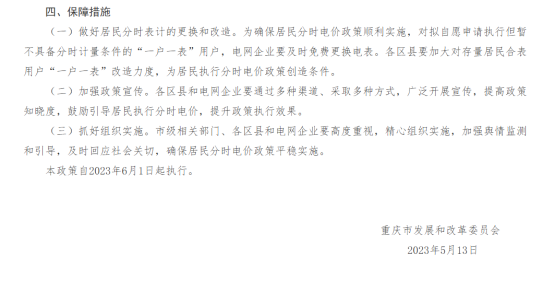 关于建立居民分时电价机制的通知