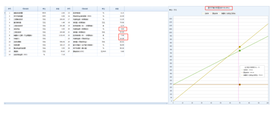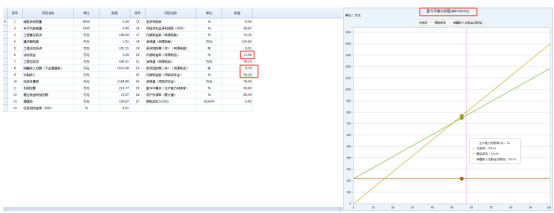 方案一:经济评价一览表和盈亏平衡分析