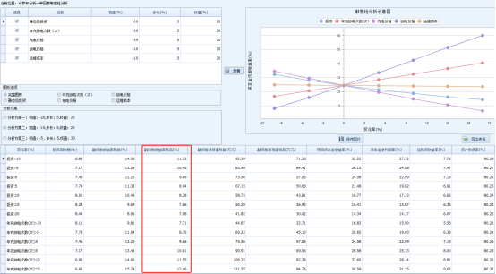 方案一: 多指标单因素敏感性分析