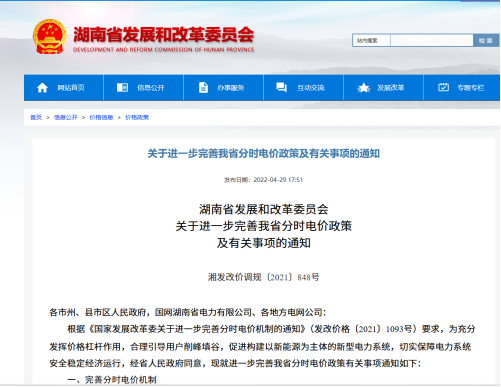 湖南工商业分时电价标准的主要依据是《关于进一步完善我省分时电价政策及有关事项的通知》(渝发改规范〔2021〕848号)。