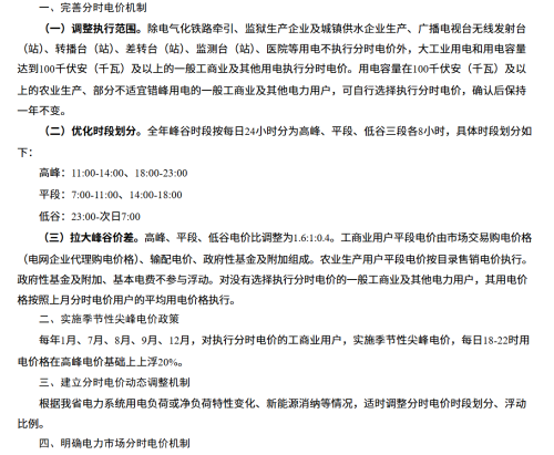 关于进一步完善我省分时电价政策及有关事项的通知