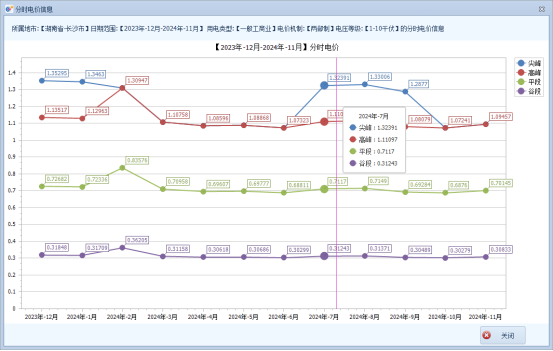 2023年12月至2024年11月电价变化图