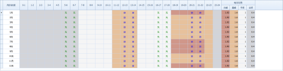 电价分时时段及充放电时段图