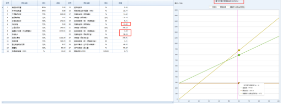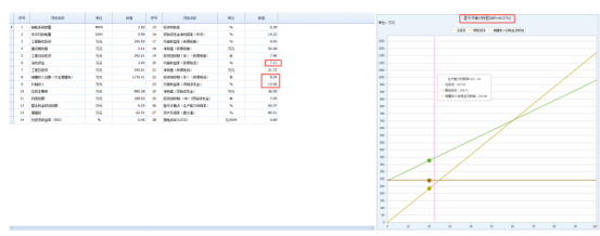方案一:经济评价一览表和盈亏平衡分析