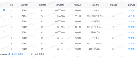 从电网购电电价标准按一般工商业单一制1-10千伏电价标准。采用最近本月综合电价数据模拟,如图: