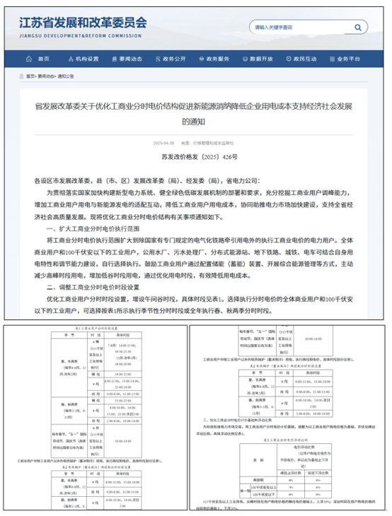 关于江苏省调整工商业峰谷分时电价政策有关事项的通知
