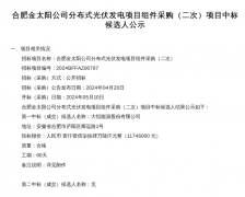 5月12日,合肥金太阳公司分布式光伏发电项目组件采购(二次)项目中标候选人公布,第一中标(成交)候选人大恒能源股份有限公司,投标报价11746000元,单价0.839元/W。...
