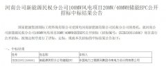 国家能源集团河南公司新能源民权分公司100MW风电项目20MW/40MWH储能EPC公开招标中标结果公告发布,中国电力工程顾问集团中南电力设计院有限公司以3828.0122万元中标该项目,折合单价0.957元/Wh。...